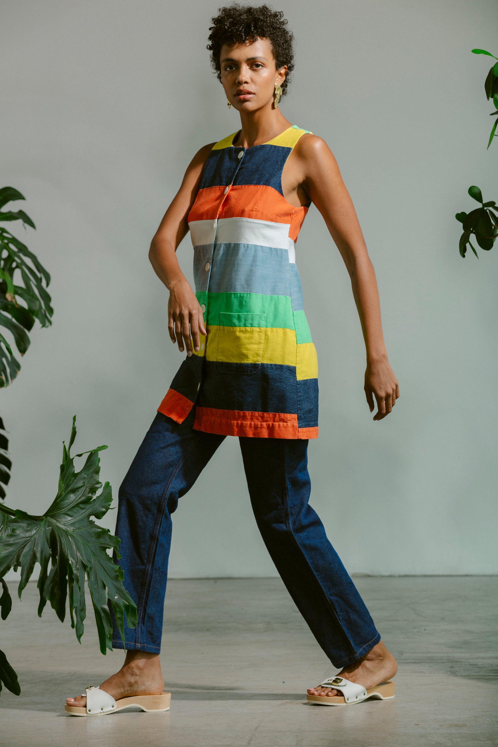 A timeless, chic, and cheery mini dress in our seasonal patchwork stripe. Also great as a tunic if that's more your speed! Runs slightly small.