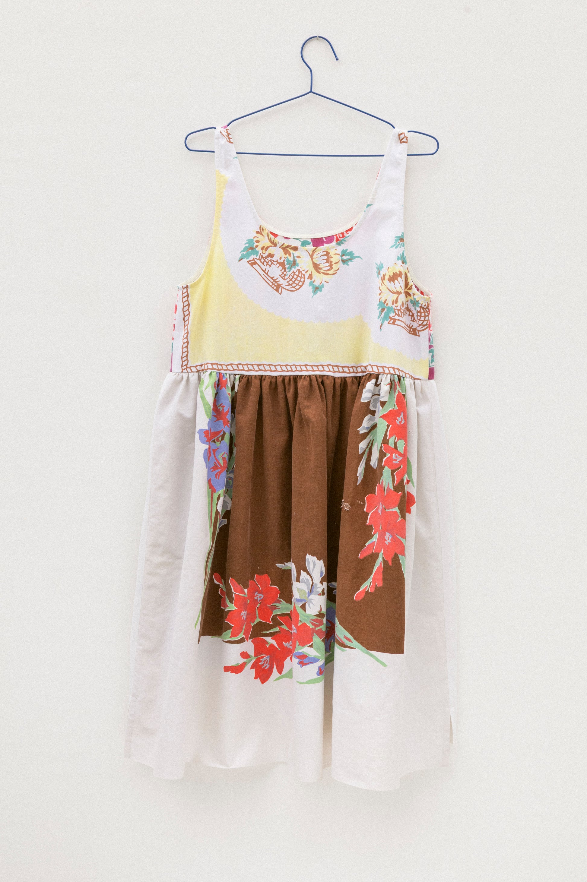 We've loved our long Basketball Dress, so we decided to make the perfect little summer version. Made from vintage tablecloths, each dress is one of a kind-featuring various prints in striking colors. Wear this dress with sneakers on a weekend trip at the lake or in bare feet for a park picnic. We also honored the length of each tablecloth, making the lengths slightly different for each dress.