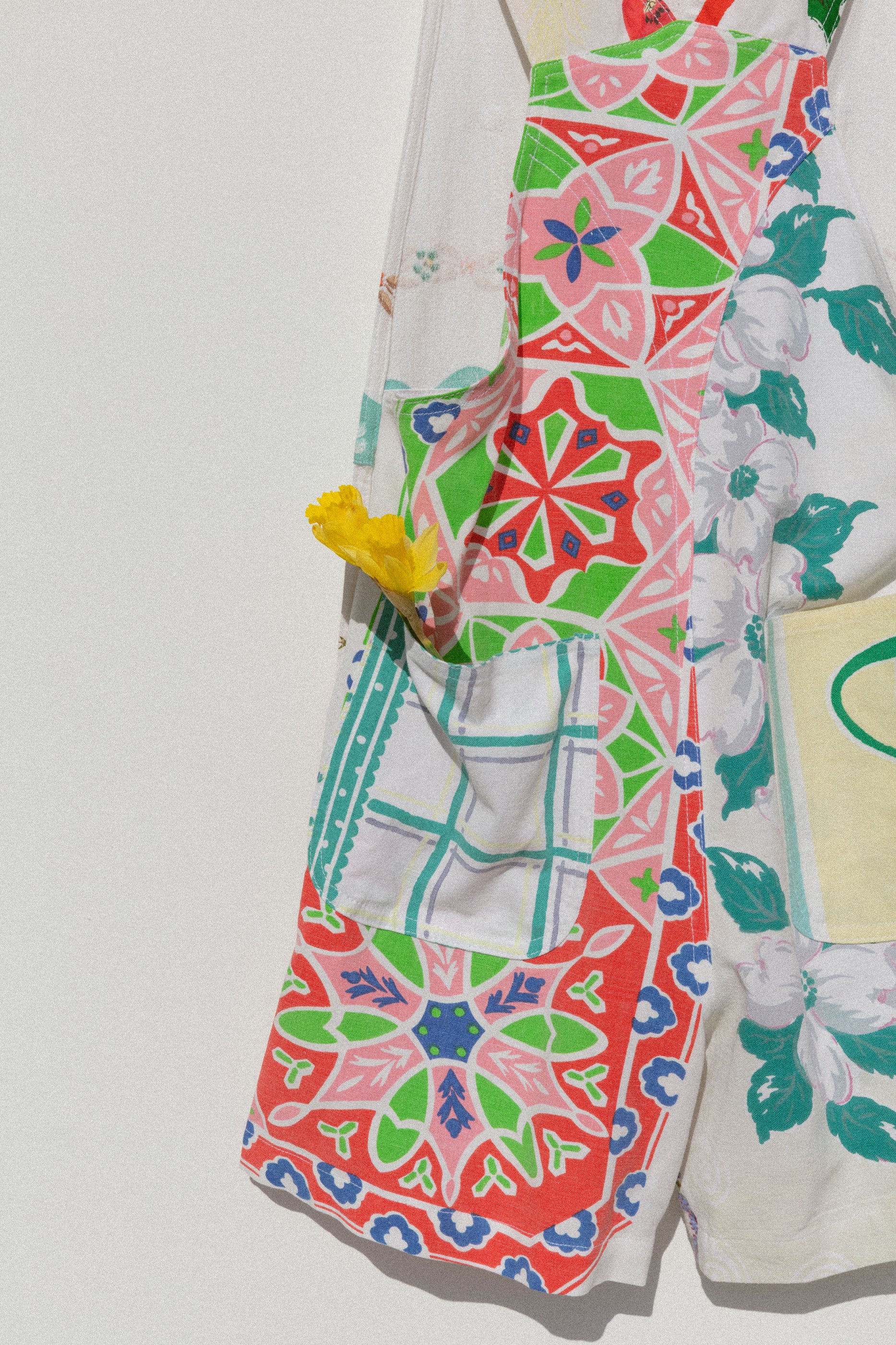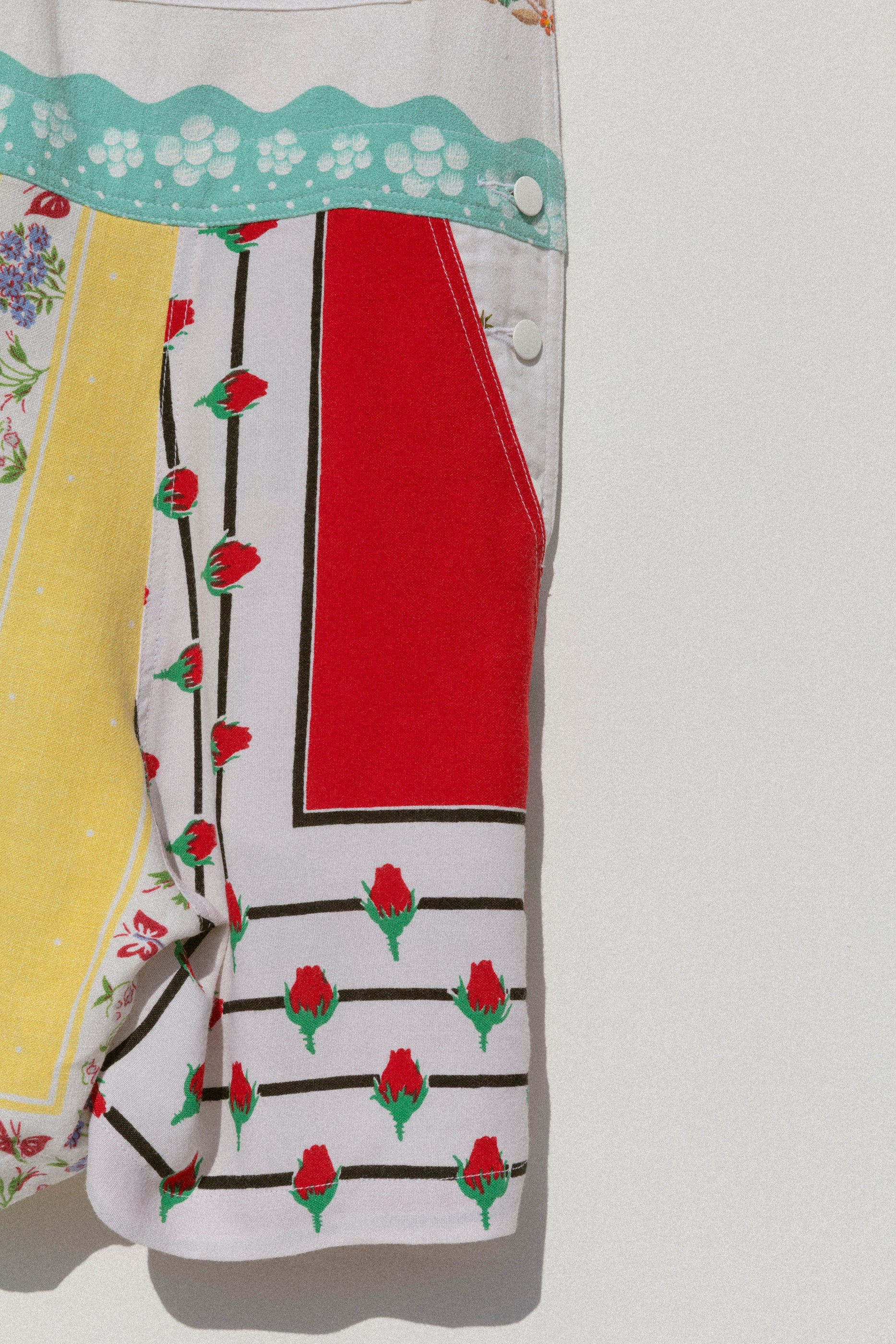 A true charmer—this playful summertime take on our classic overall silhouette is crafted from a vibrant mix of printed vintage tablecloths. Perfect for any warm-weather occasion, they're as versatile as they are eye-catching. Pair them with a blouse and dainty flats for a dressed-up look, or keep it laid-back with a tee and sneakers. Either way, they’re bound to stand out.