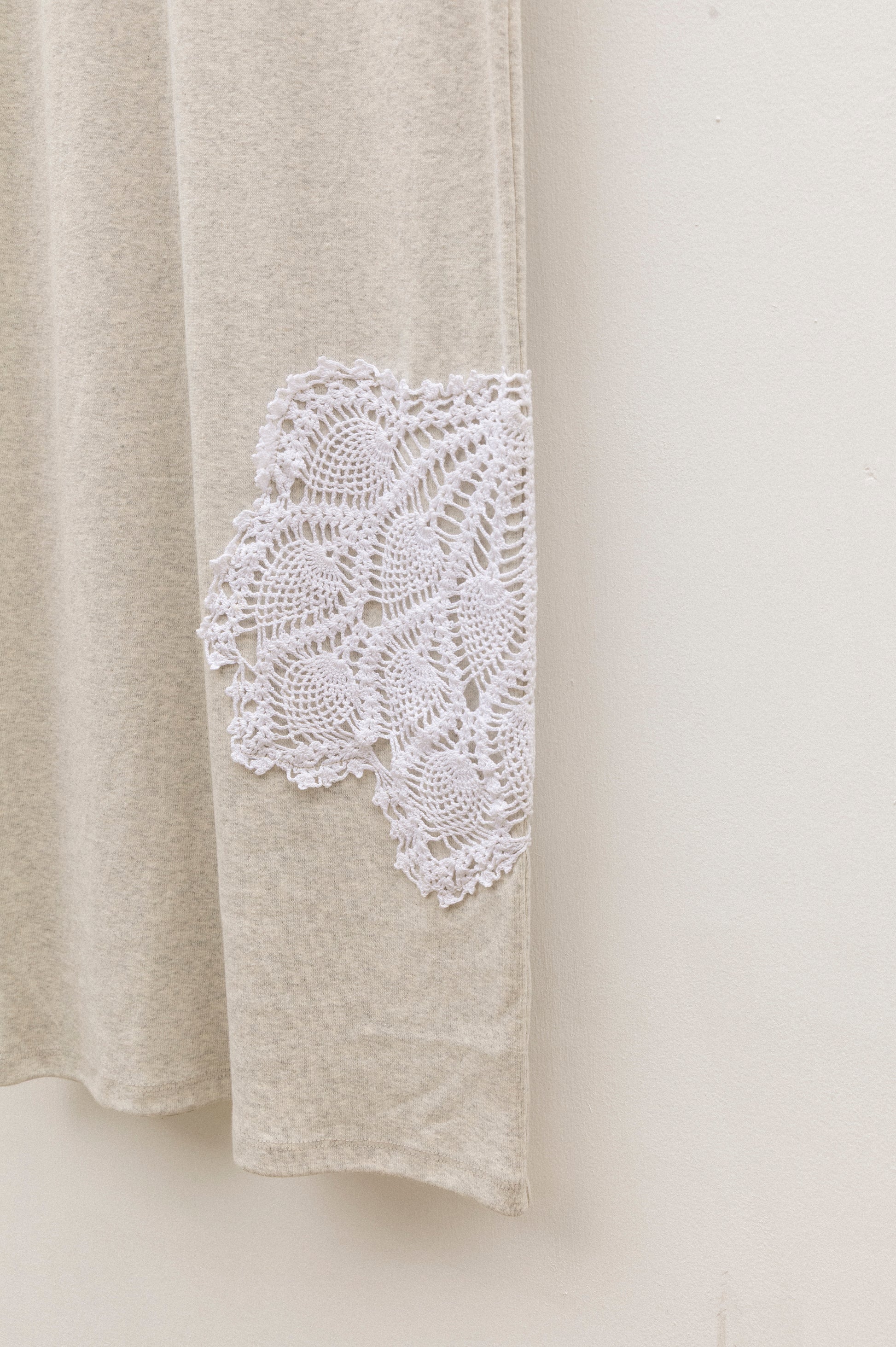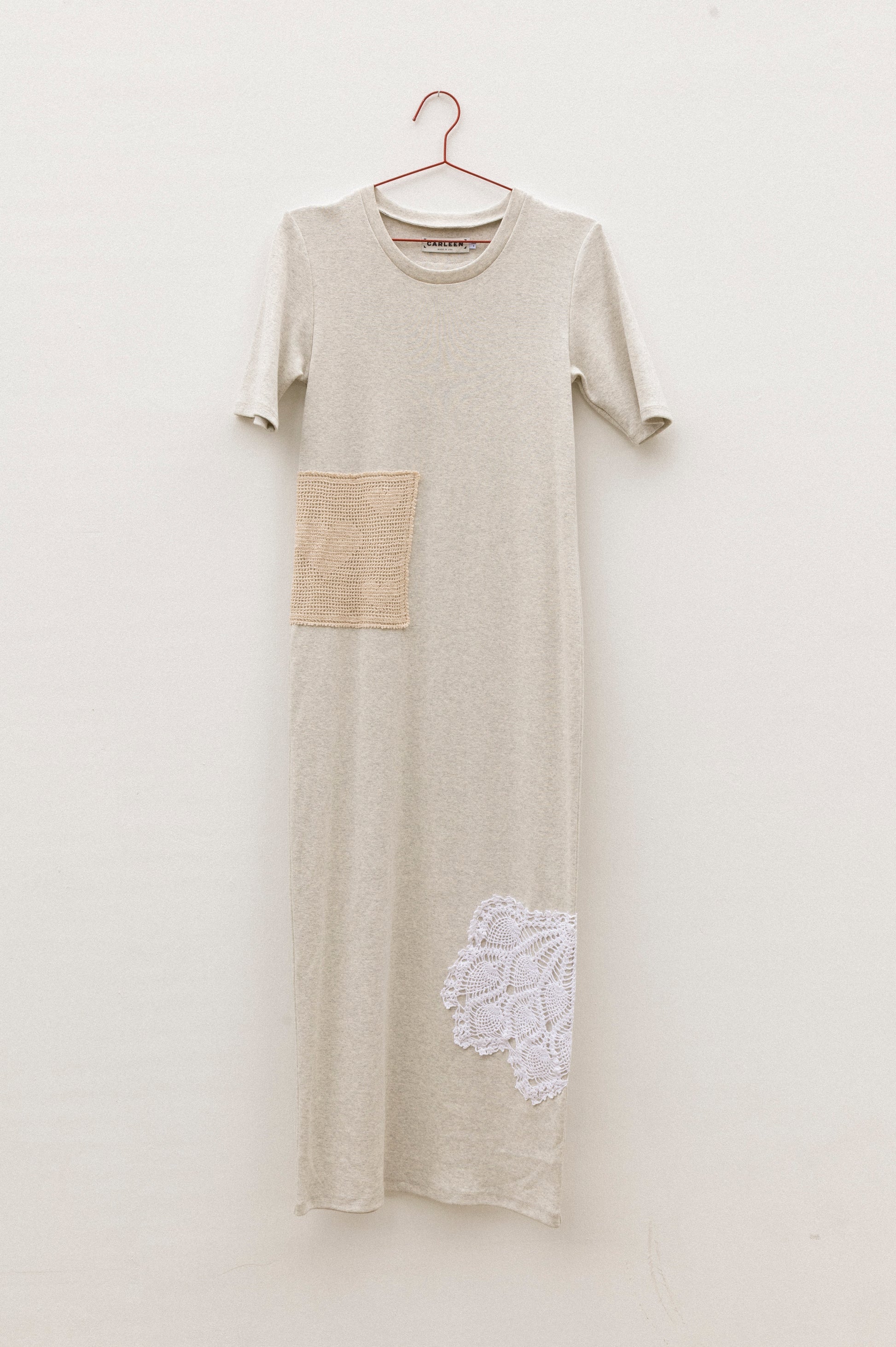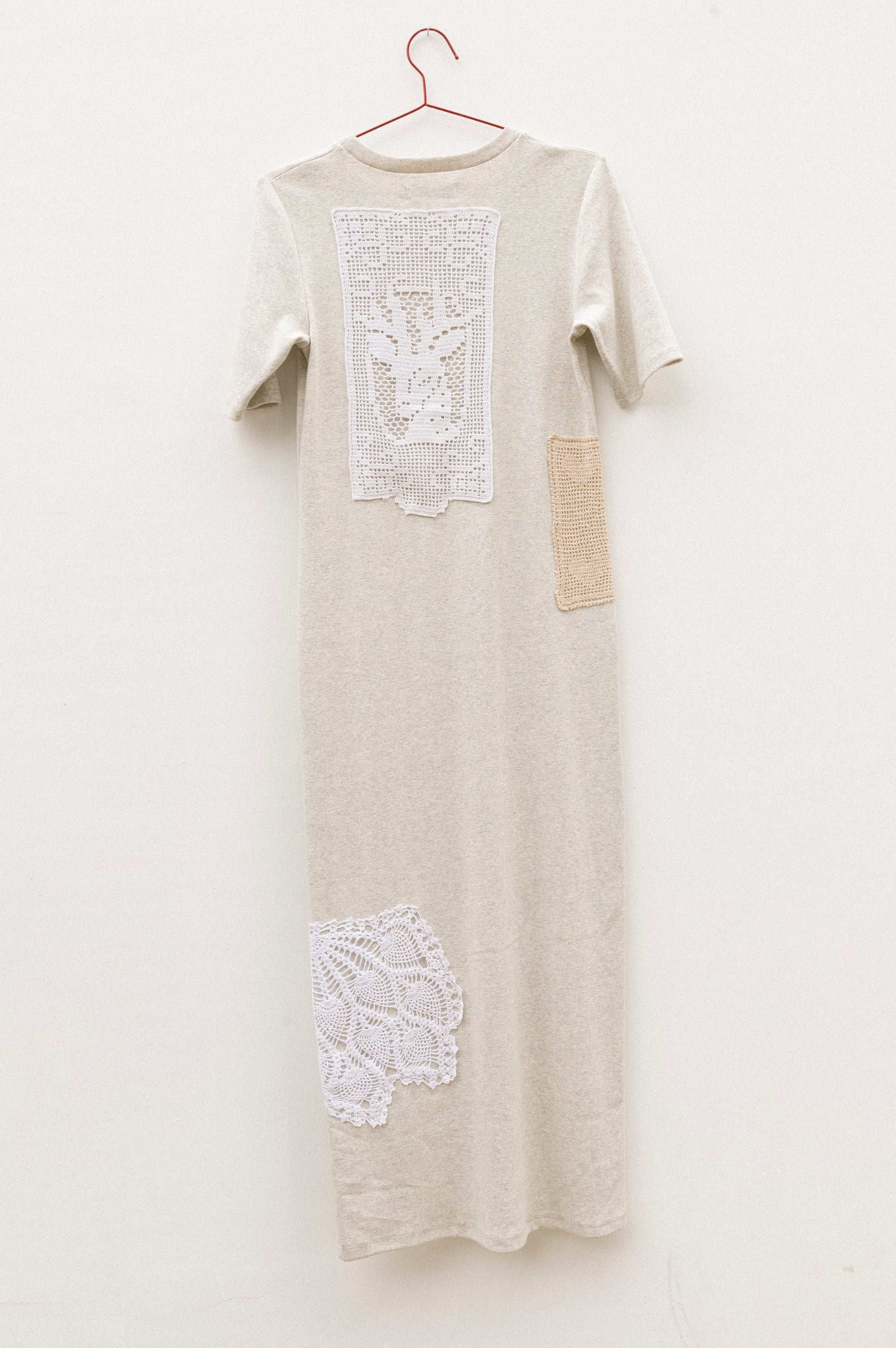 We love the wearability of a long t-shirt dress and are delighted to share our elevated version. Made from deadstock melange rib knit cotton, this dress is a comfortable staple for any day that requires work, play, or both! We sourced and thoughtfully placed some vintage doilies, making each dress different from the next. You'll find a generous and supportive stretch in the chest and hips - making it easy to wear and effortlessly cute!