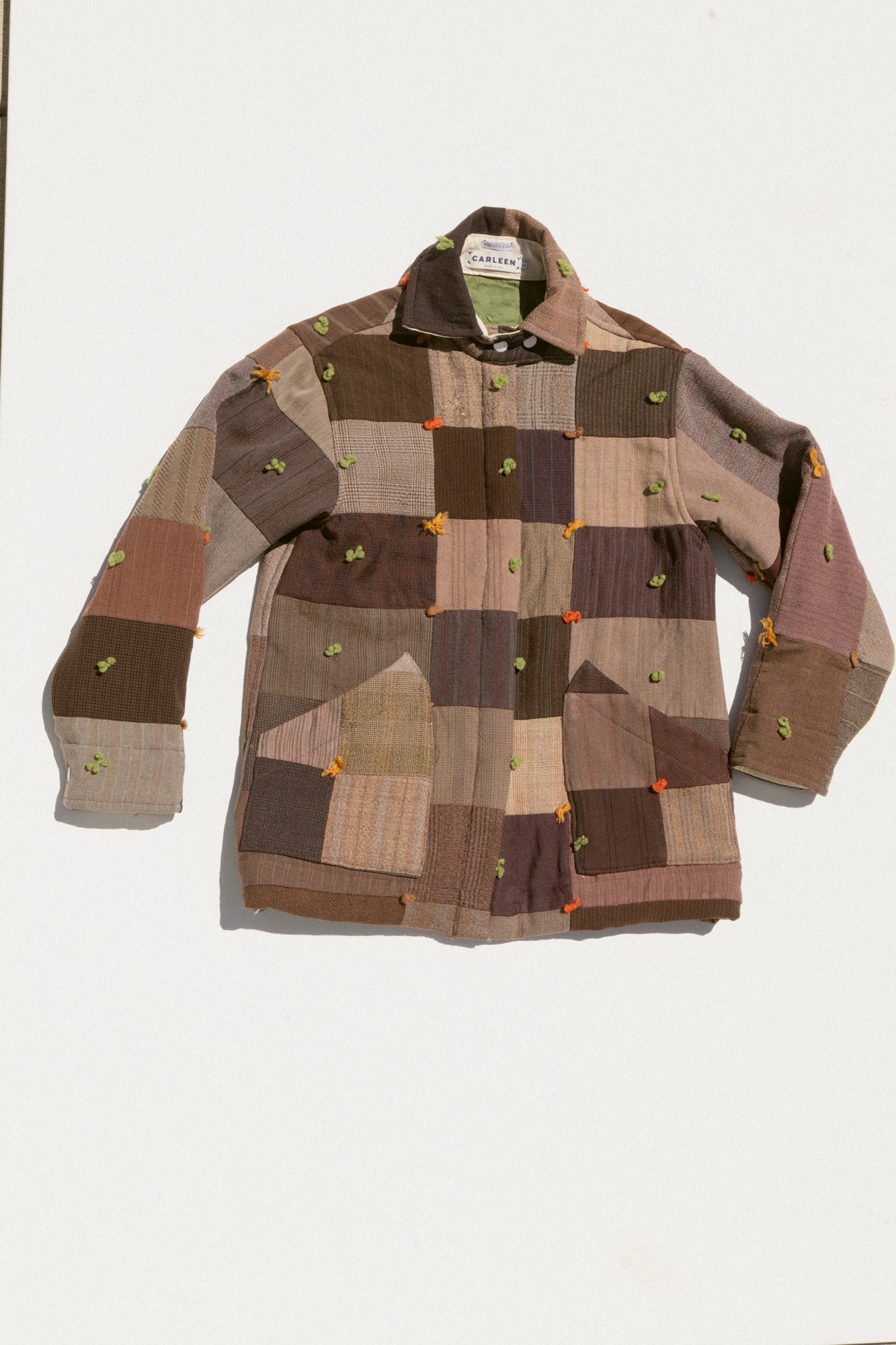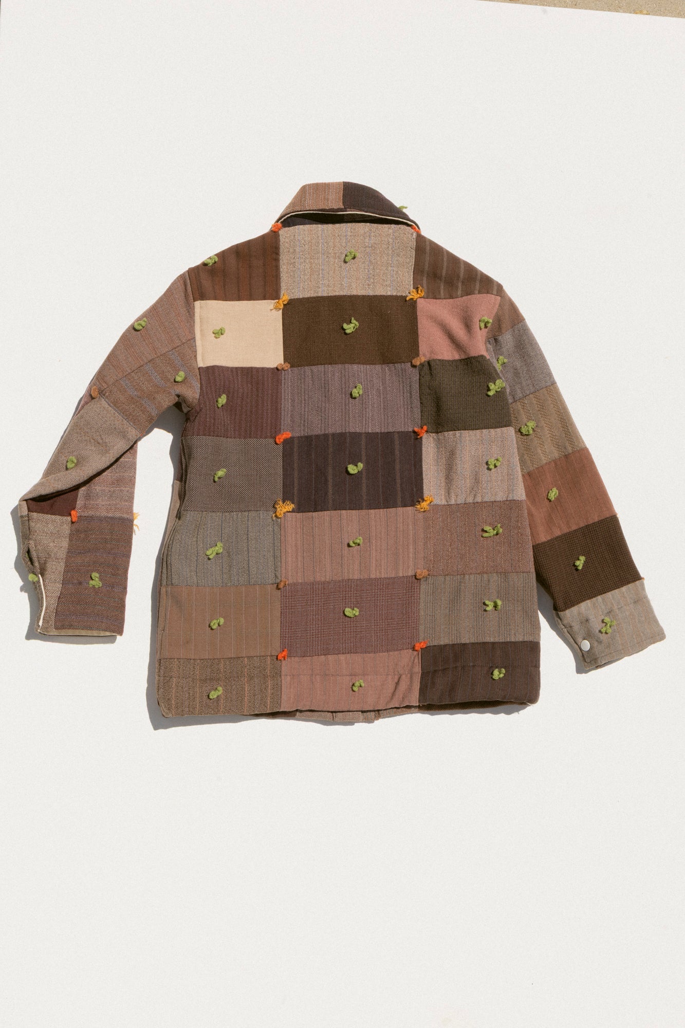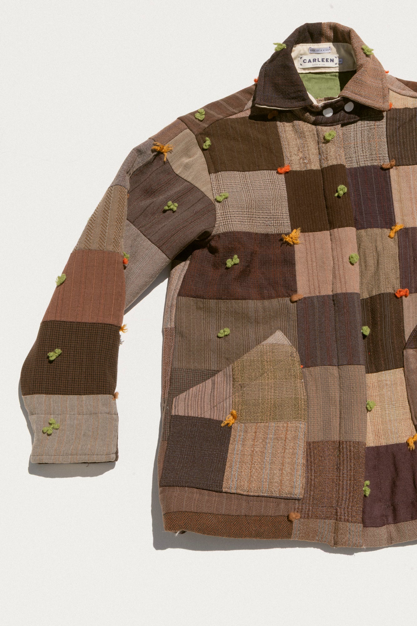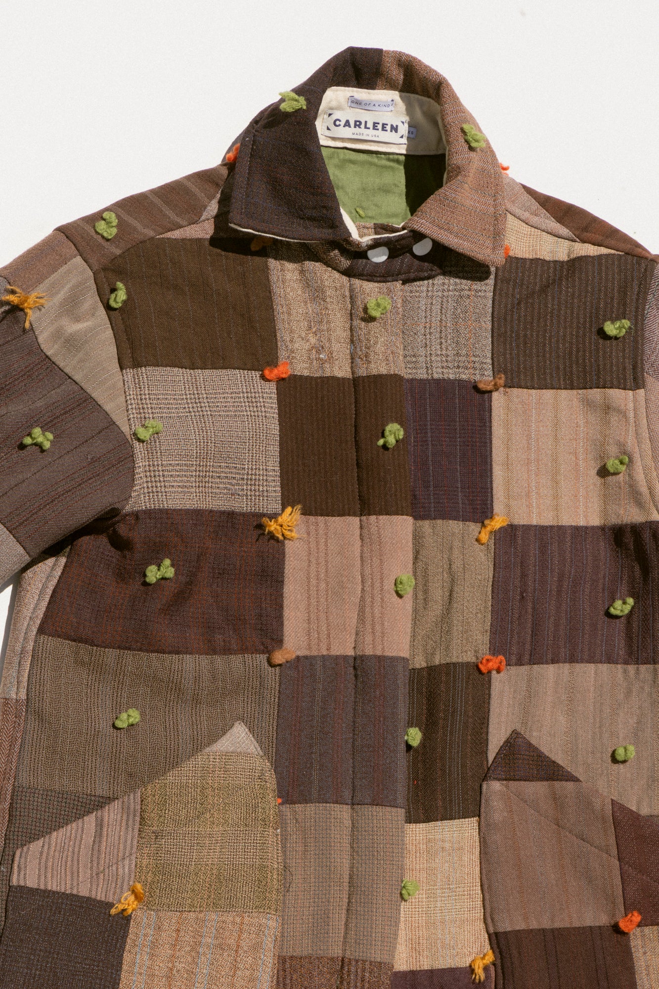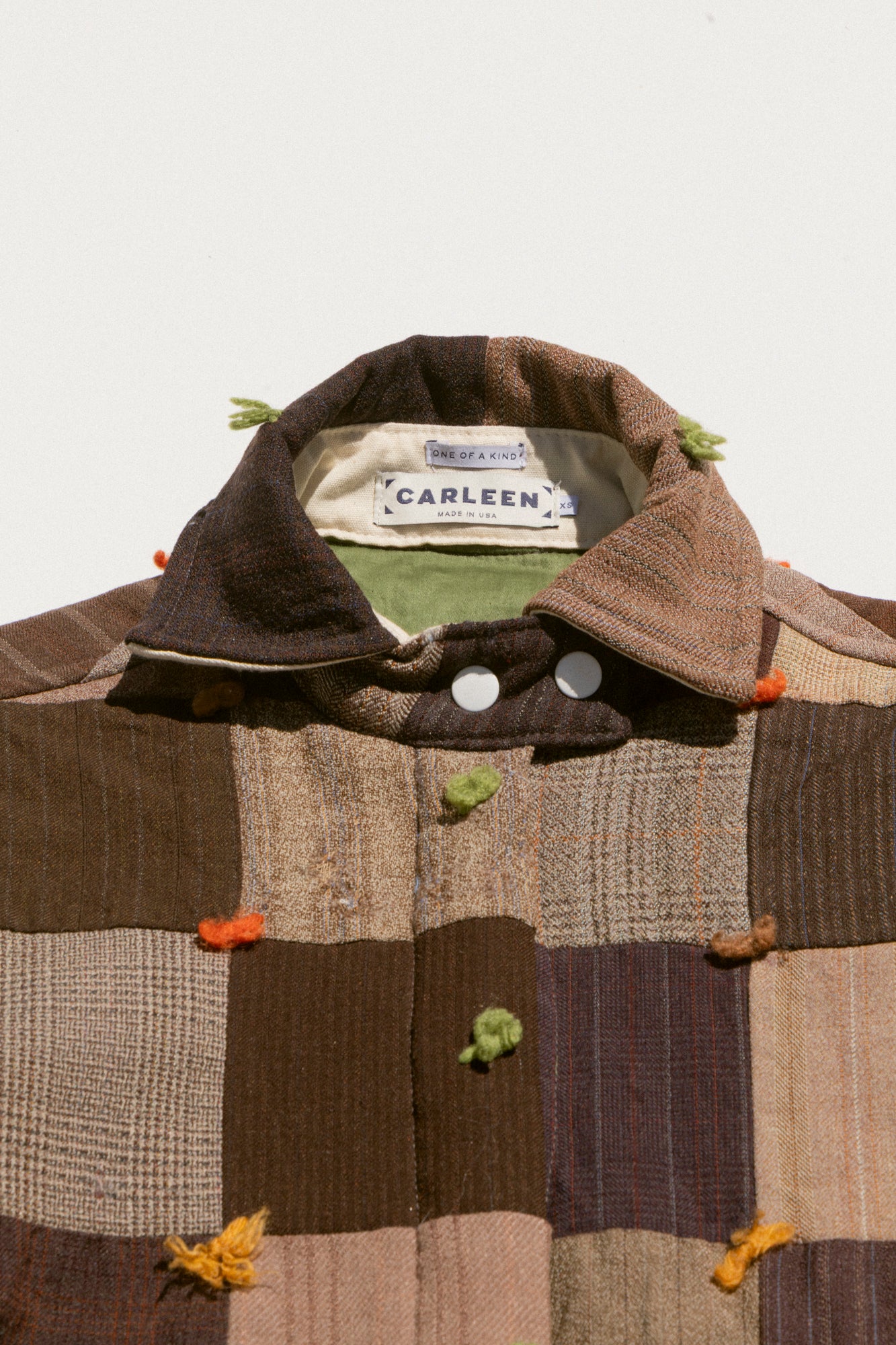 This jacket features one of a kind textiles that we hand picked. This means it may include wear, distress, marks, and other signs of age intentionally as we believe this adds to the character of the finished garment. All one-of-a-kind items are final sale; review our full return policy here.