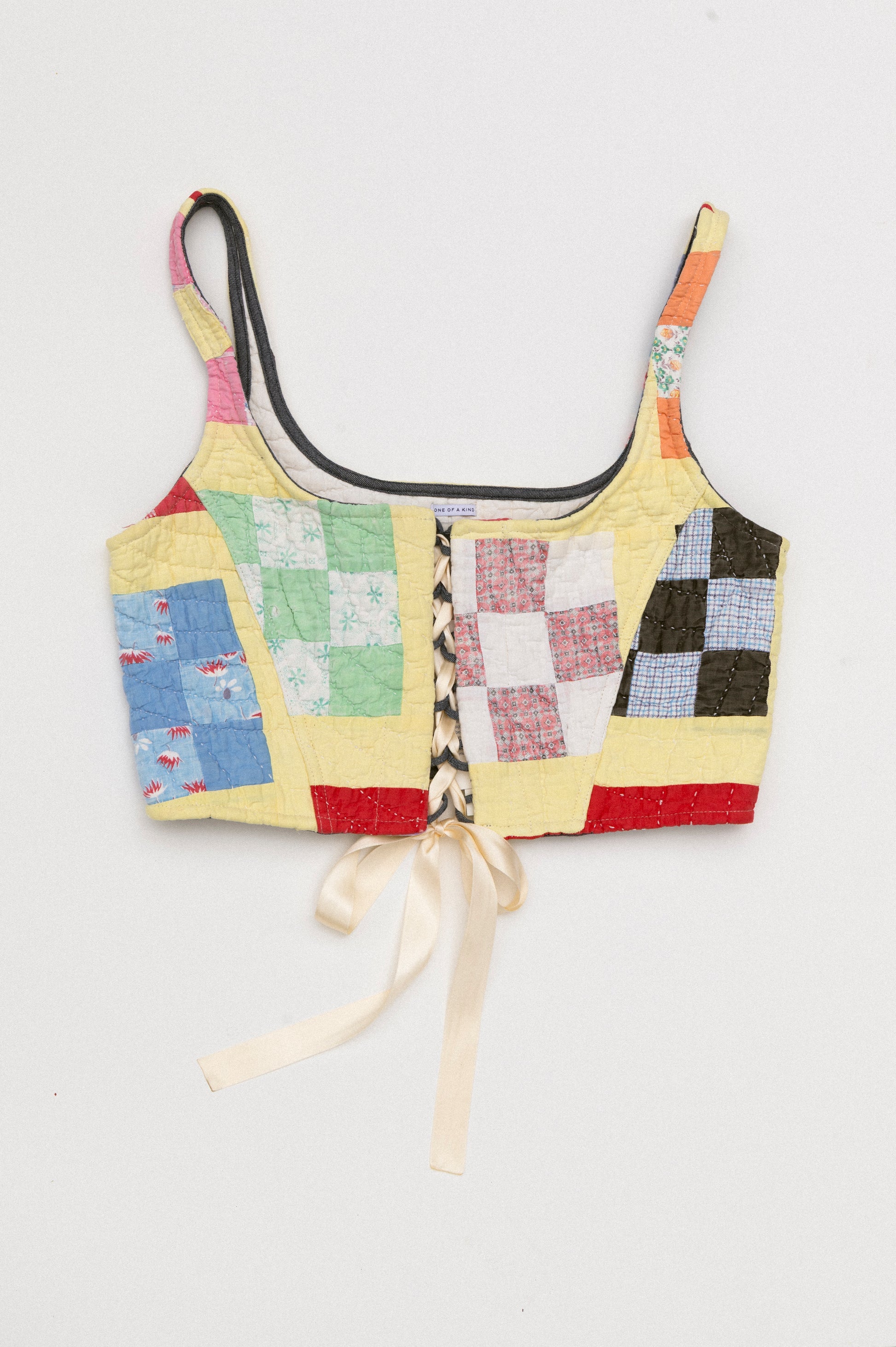 Handcrafted from vintage quilt fabrics, this unique piece combines art, history and fashion in a way that celebrates individuality and creativity. The satin ribbon closure is so cute and easy to fasten. Made of soft cotton vintage quilts for all-day comfort.