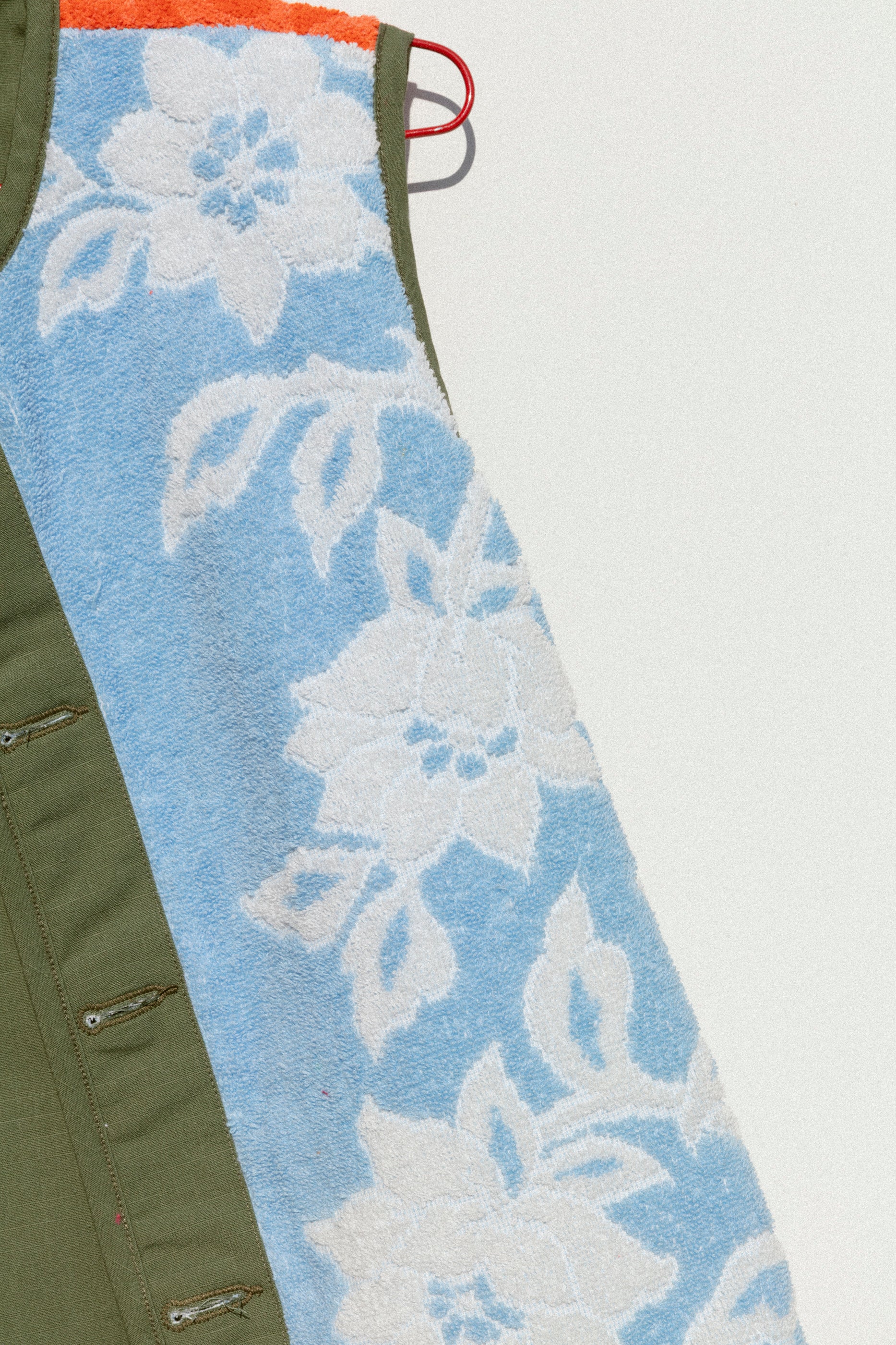 These fully reversible and one-of-a-kind vests feature a mix of vintage bath towels. We’ve anchored this vintage textile with sage green cotton ripstop and matching tonal buttons for when you’re looking to keep things more subtle. We love the layering possibilities- put it over a sweatshirt for added warmth (and color!) on days where it feels like the weather could do pretty much anything. Buttons on the interior and exterior make it fully reversible.