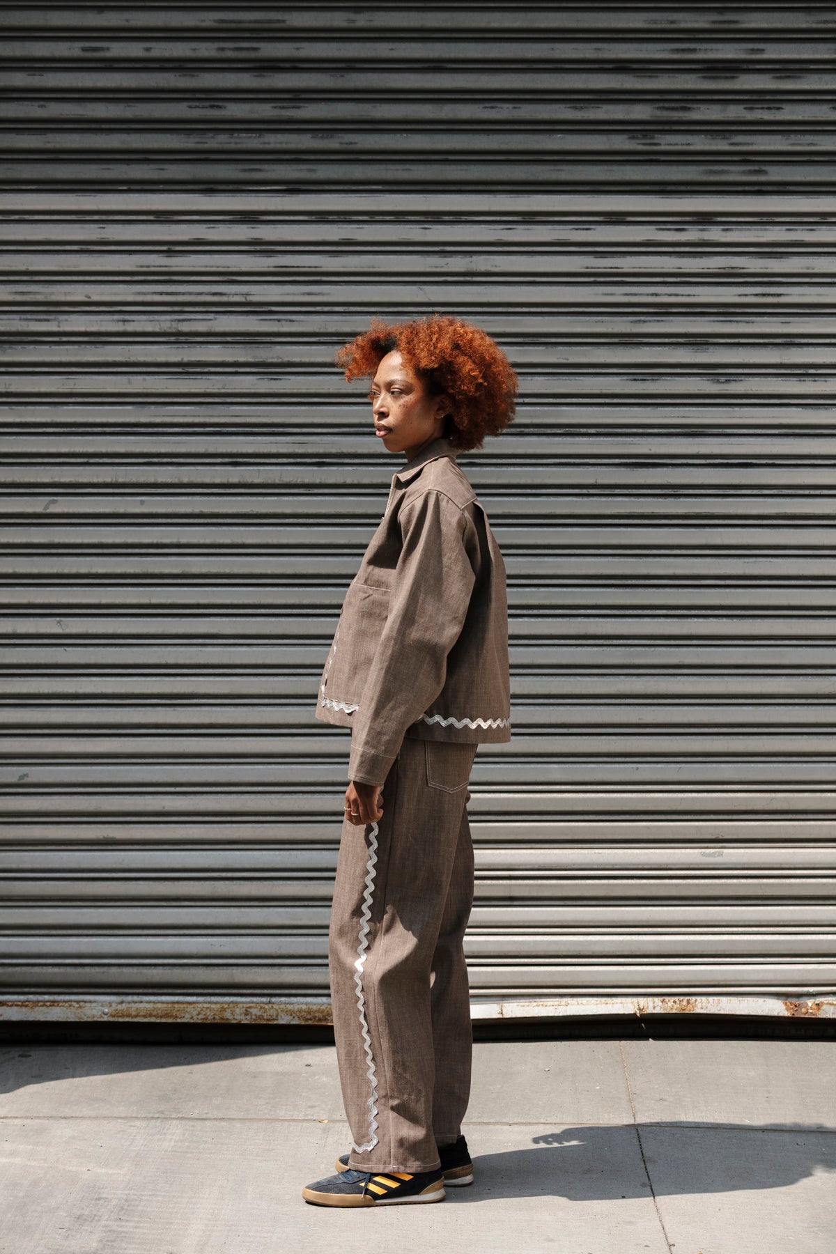 Deadstock 100% cotton denim; wash cold or dry clean.