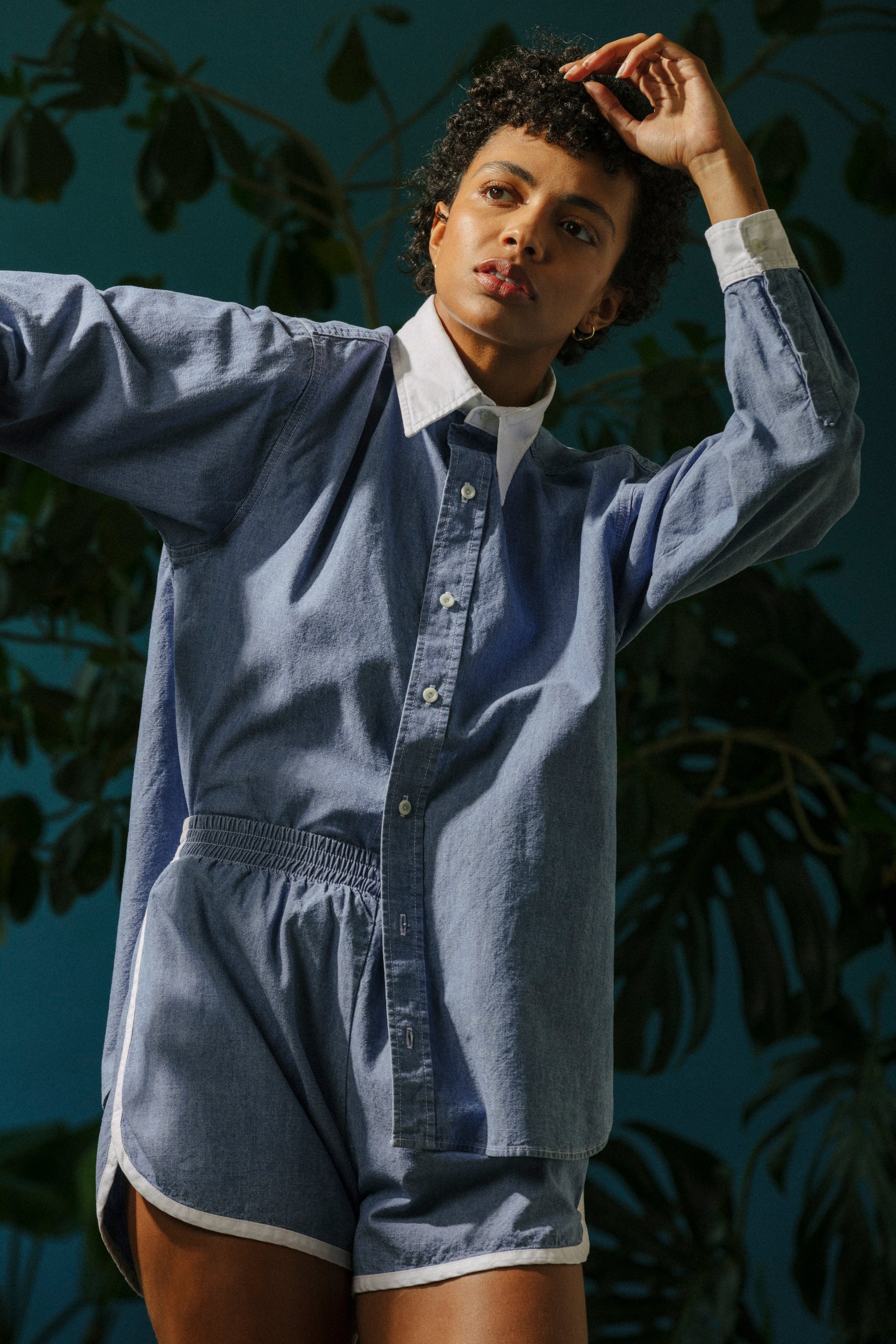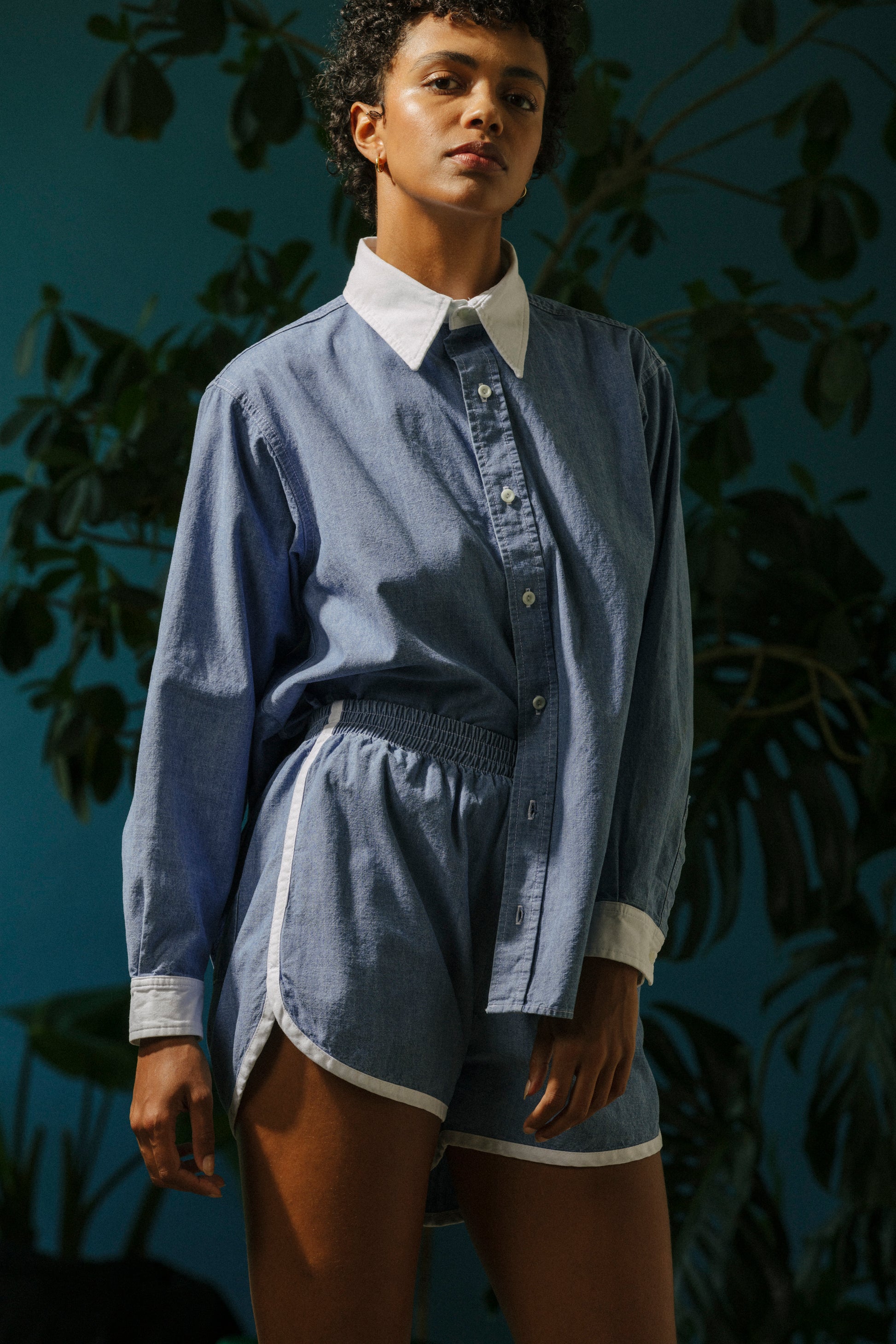 Our Track Shorts are a much-loved favorite. Made from washed chambray with white oxford cloth binding, these super-versatile shorts look great with a matching shirt (we have three you can pair back to!), or your favorite sweatshirt. Shorts have a single back pocket and elastic waist. Washed for softness and patina.