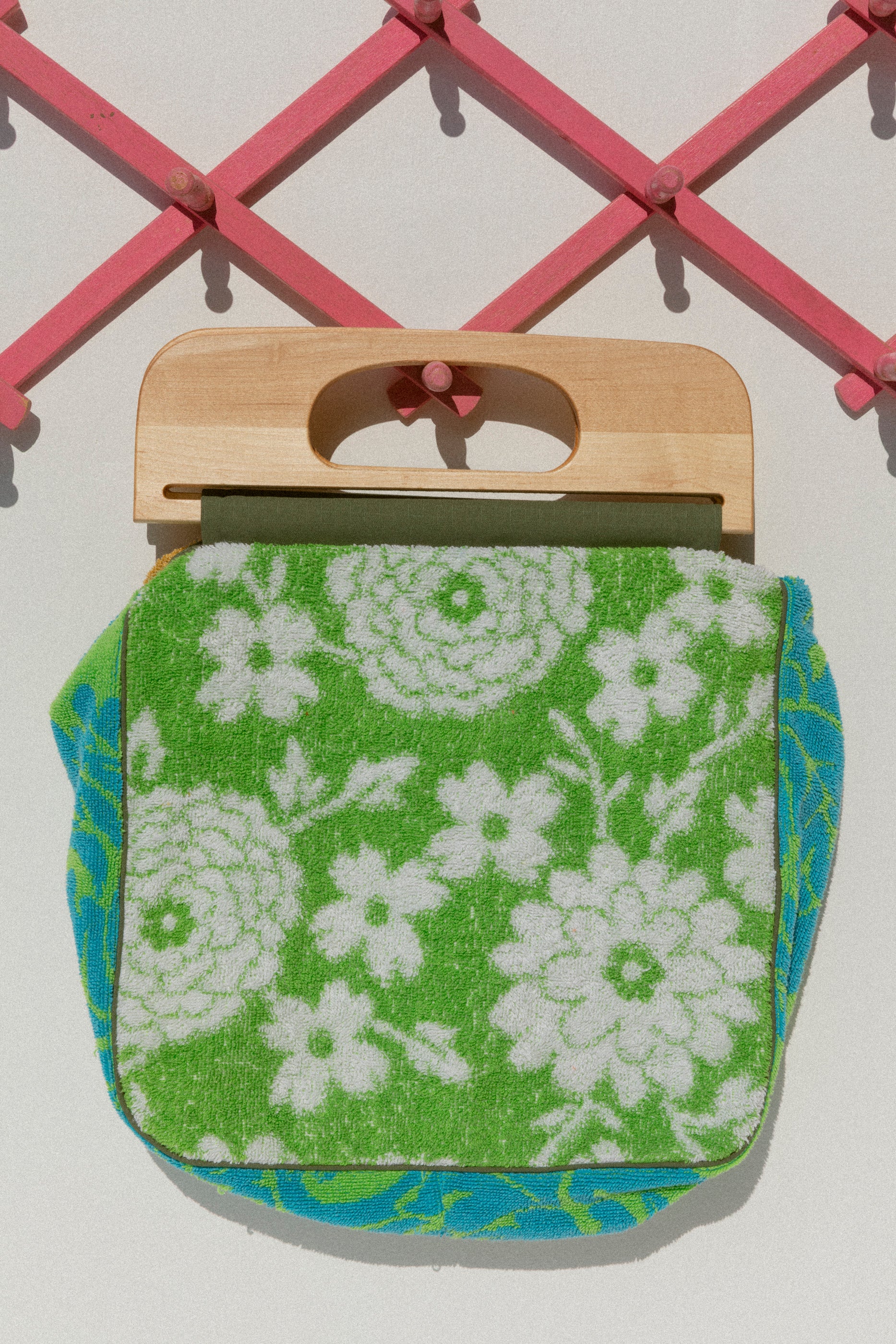 We love our towel garments so much, we had to add an accessory. Each bag is made from a mix of vintage towel pieces attached to a super smooth wooden handle with a light, natural finish. The Towel Bag is full of satisfying textures, as it is also lined with a 100% cotton ripstop fabric. Big enough to take a book to the beach, but small enough it can also be carried around on your night out!